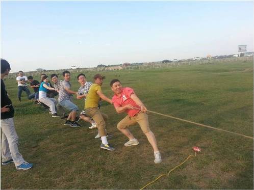 黃隊(duì)給力,雖然瘦小,但勁往一處使,團(tuán)隊(duì)的力量戰(zhàn)勝其他三隊(duì),最終獲得拔河冠軍