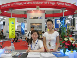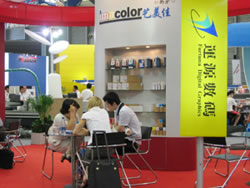 我公司展位位于2號館內, 總展出面積200多平米,主要展出了戶外高精度噴繪機——水星噴繪機、YSL雷鳥/颶風設備,戶內寫真機——MIMAKI系列,雕刻機系列——雕霸雕刻機、利得寶激光雕刻機,還展出了藝美佳耗材——imacolor藝美佳墨水、imacolor藝美佳相紙系列。