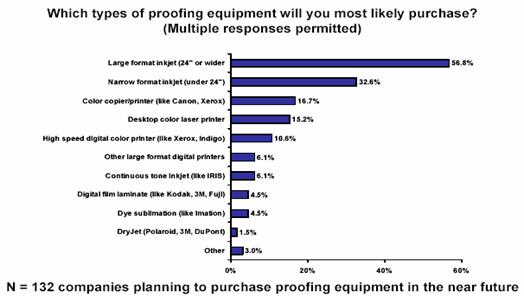 2004年1月市場(chǎng)研究公司InfoTrends發(fā)表的CAP ventures和“Digital Output Magazine” 聯(lián)合開展的公司用戶調(diào)查結(jié)果,回答近期內(nèi)公司準(zhǔn)備采購(gòu)何種數(shù)碼打印設(shè)備時(shí),56.8%的公司準(zhǔn)備采購(gòu)超過(guò)24英寸的寬幅噴墨打印機(jī),32.6%的公司準(zhǔn)備采購(gòu)桌面噴墨打印機(jī),桌面彩色激光打印機(jī)的采購(gòu)傾向用戶15.2%, 可見噴墨在該領(lǐng)域占主導(dǎo)地位,這種狀況在一定時(shí)間內(nèi)延續(xù)下去。