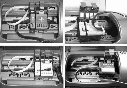 上面提到的連續(xù)供墨各品牌產(chǎn)品基本上都是“傻瓜式”的安裝辦法,按照說明書操作即可。但是,很多初次接觸的用戶過不了這一關(guān),因?yàn)樗⒉皇窍胂蟮摹叭绨惭b墨盒一樣簡單”,難點(diǎn)就在于墨盒芯片對(duì)位、排管的具體走向和固定。