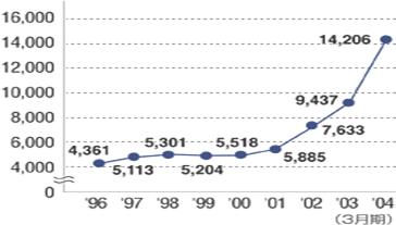 雇員數(shù)量 (2004年3月31日) | 285名 | 301名 | 344名 |